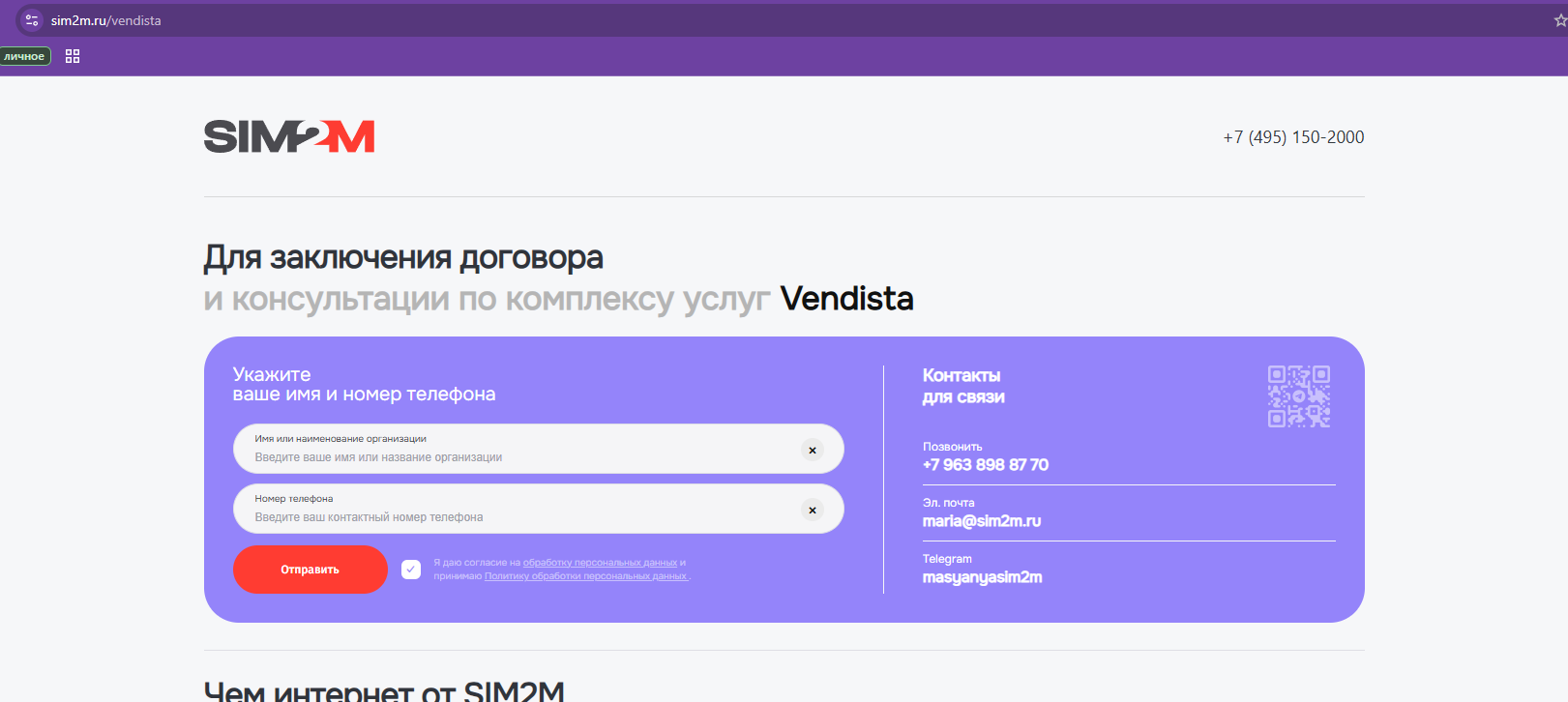 1. Приобретите SIM-карту от компании МегаТел возможно, перейдя по ссылке: https://sim2m.ru/vendista ,