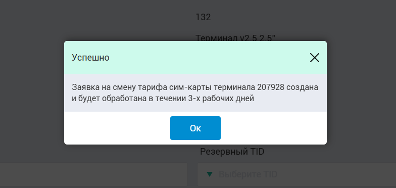 3.1.4. После этого действия отправится запрос в Вендисту, для перевода СИМ карты данного терминала на тариф «Биллинг 3»;