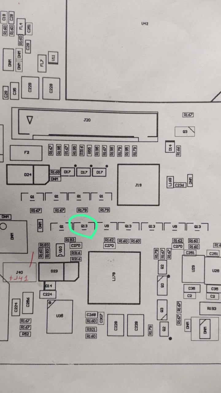 Выпаять с платы чип Q13, представленный на инструкции и схеме, с помощью паяльника.