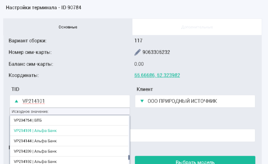 Важно! В инструкции мы рассматриваем подключение к терминалу Vendista версии V2.5 сборка терминала 132 (можно посмотреть вариант сборки по пути меню Терминалы - карандаш - Версия сборки)
