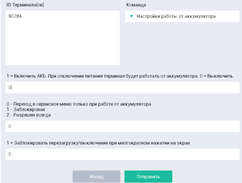 Нажимаем отправить конф. На терминал, после этого он перезагрузиться